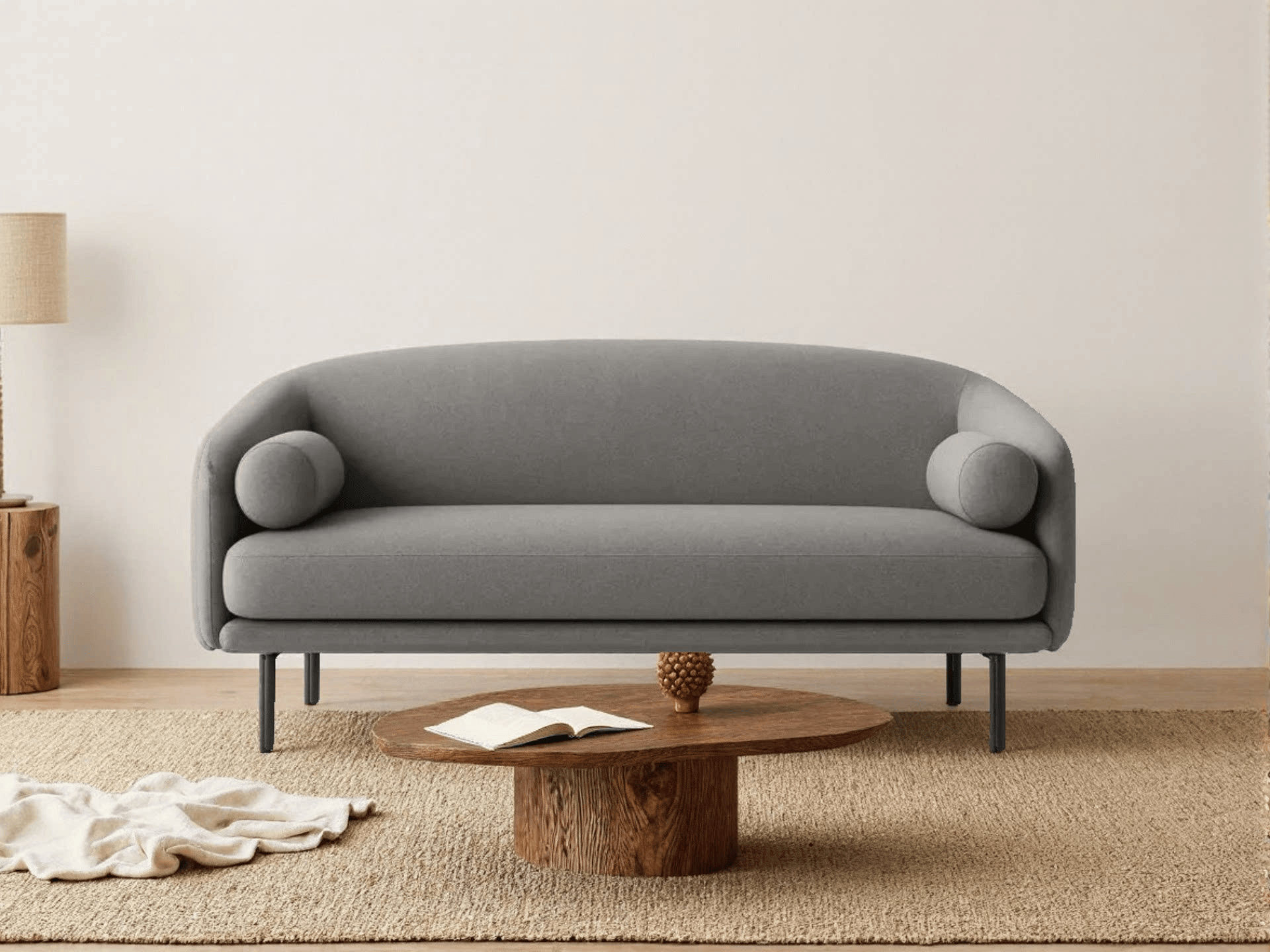 Canapé long en tissu polyester gris avec coussins roulés 200x90x85 cm(L×l×H)